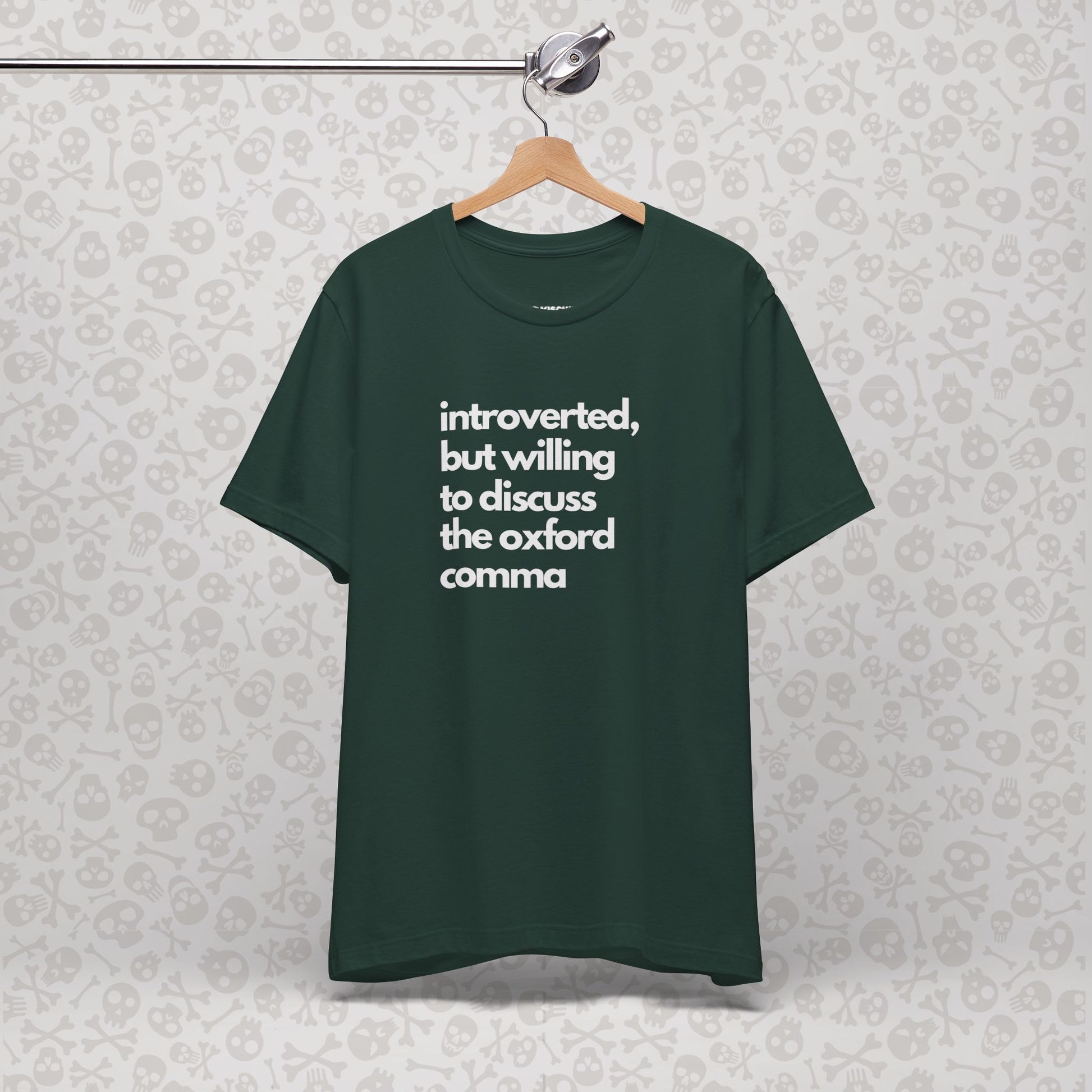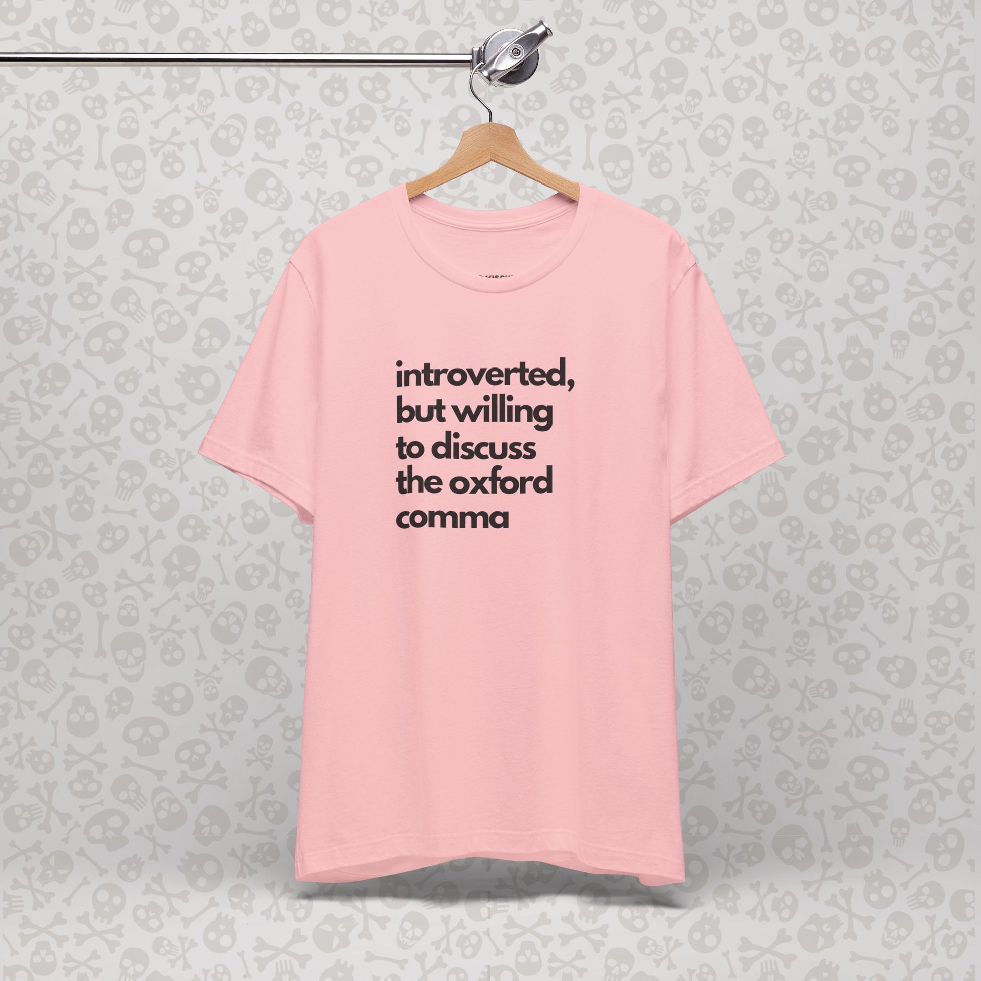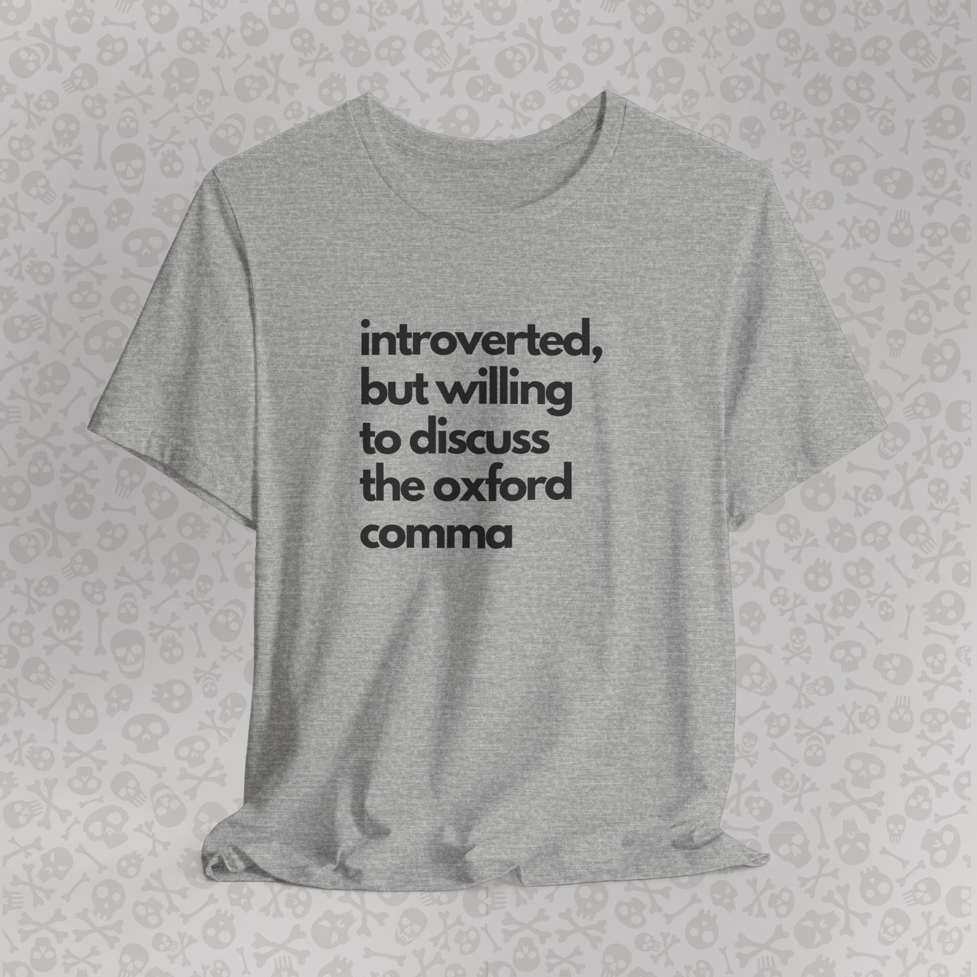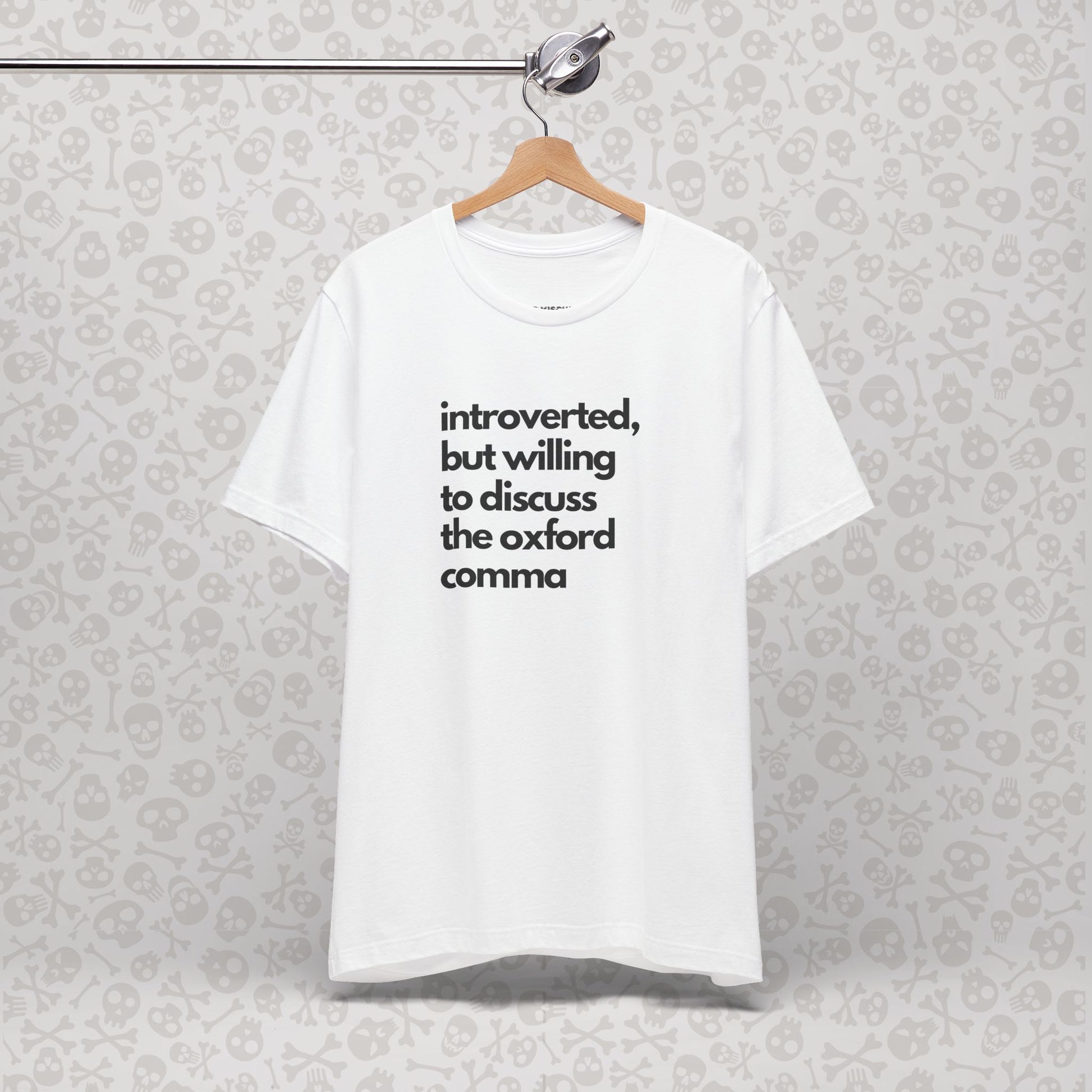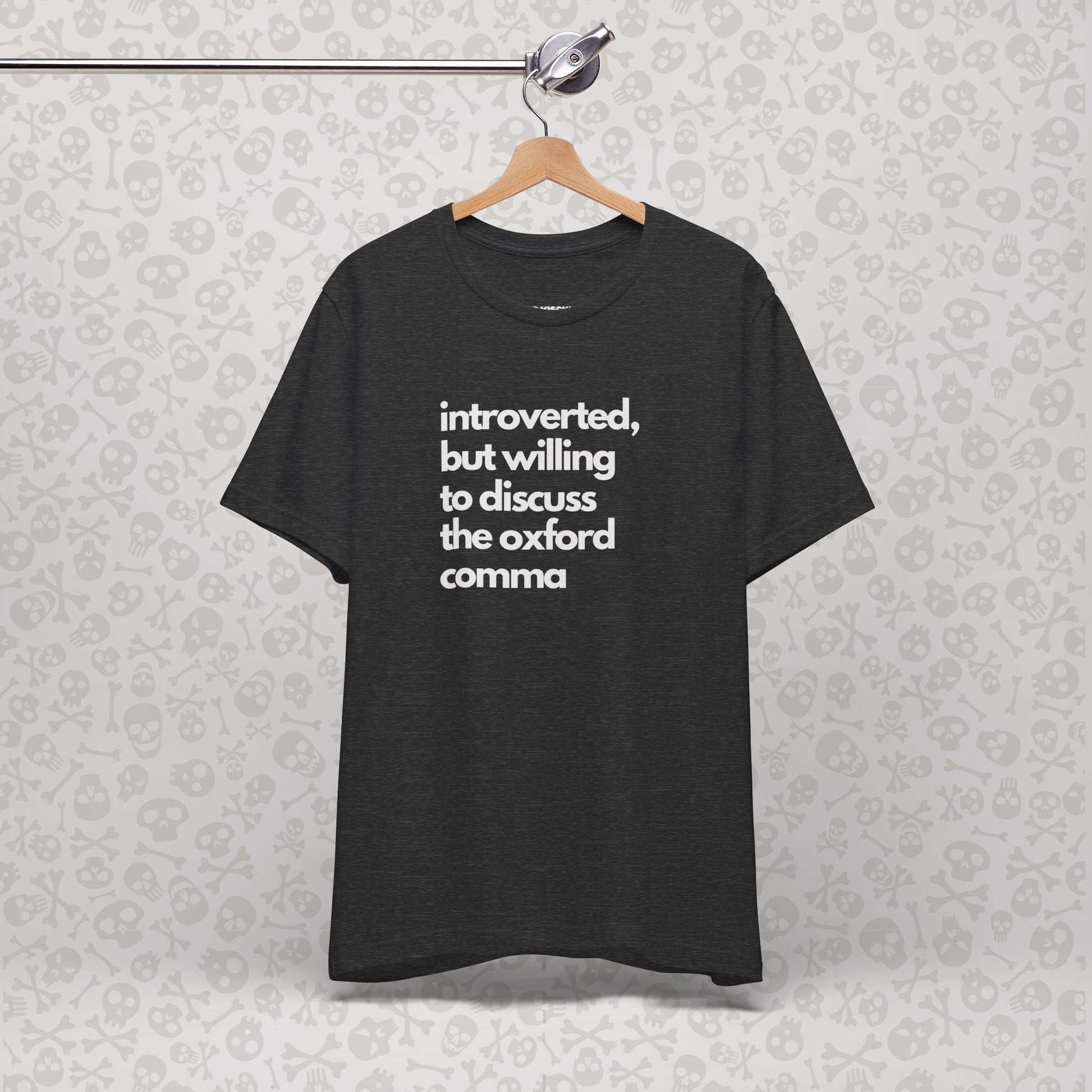 “Introverted, But Willing to Discuss the Oxford Comma” T-Shirt